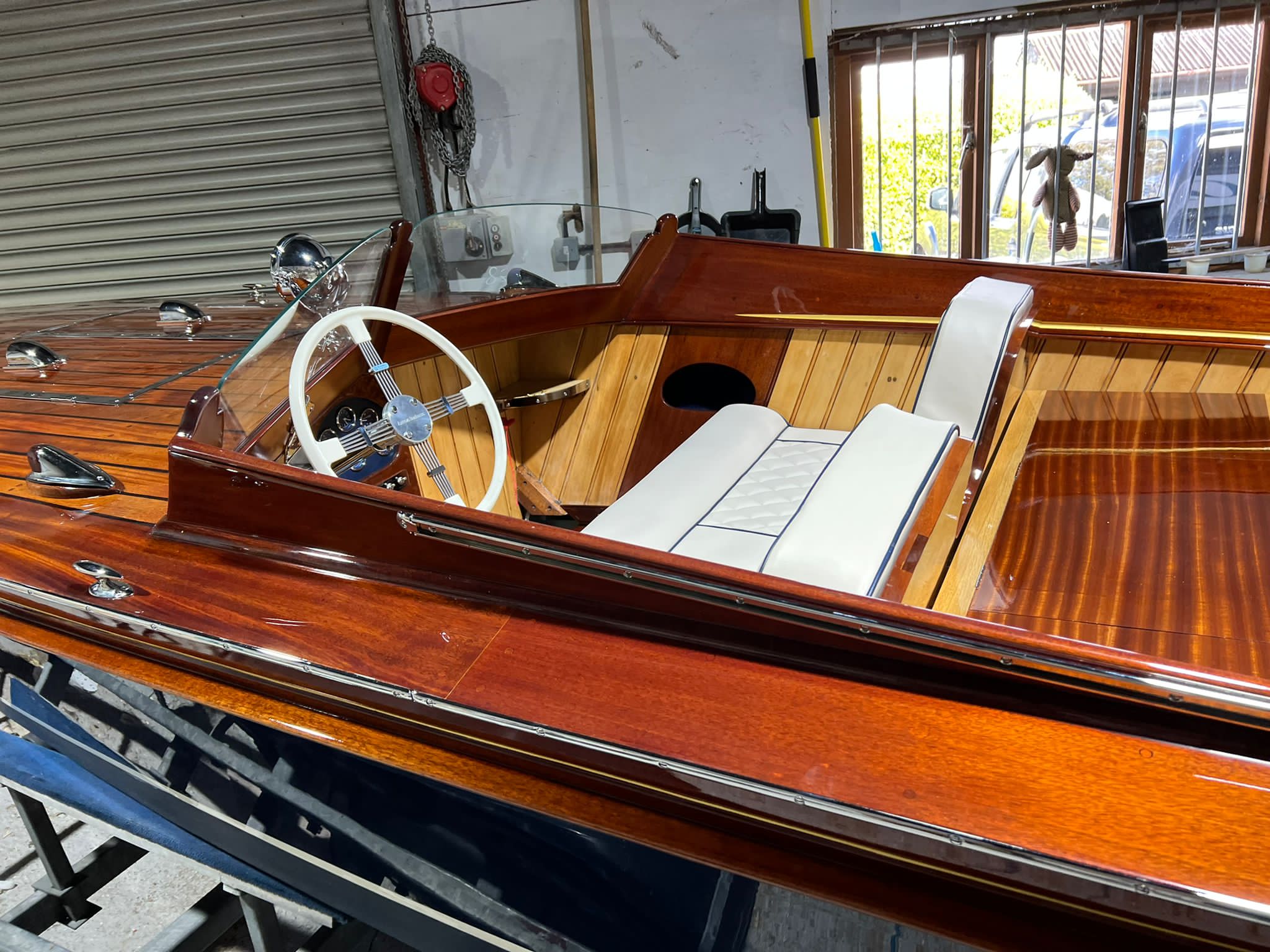 - Decks treated with 16 coats of Awlwood varnish, wet sanded and machine polished to a mirror finish