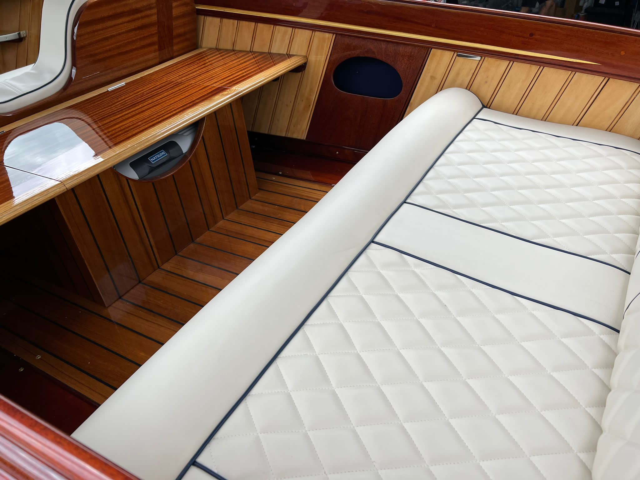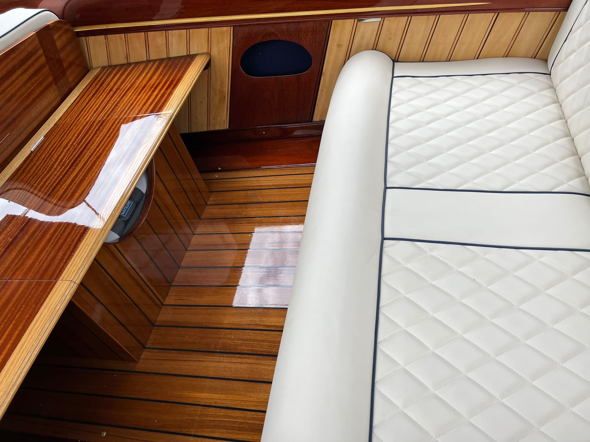 Like all of our boats she has gone through an extensive restoration process and is now in ‘showroom’ condition, inside and out. Her hull and deck have been fully restored and her engine has been rebuilt by engine specialist Tom Roy.