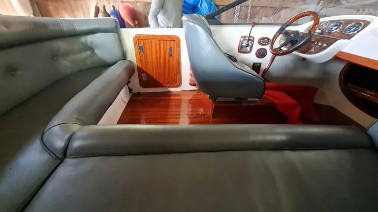 Passers by often mistake these boats for Rivas but the interiors are so much more usable with the table and no engine to get in the way as this is secreted under the aft deck. In addition this model has a fridge and a cocktail cabinet.