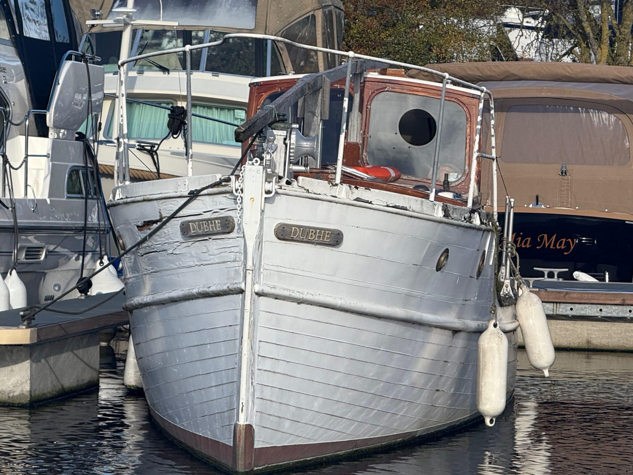 Sadly, her most recent custodian has passed away, and she is now looking for a new home. For the right person, Dubhe offers the chance to restore a genuine piece of Thames heritage and, in time, see her once again become a source of pride on the river.