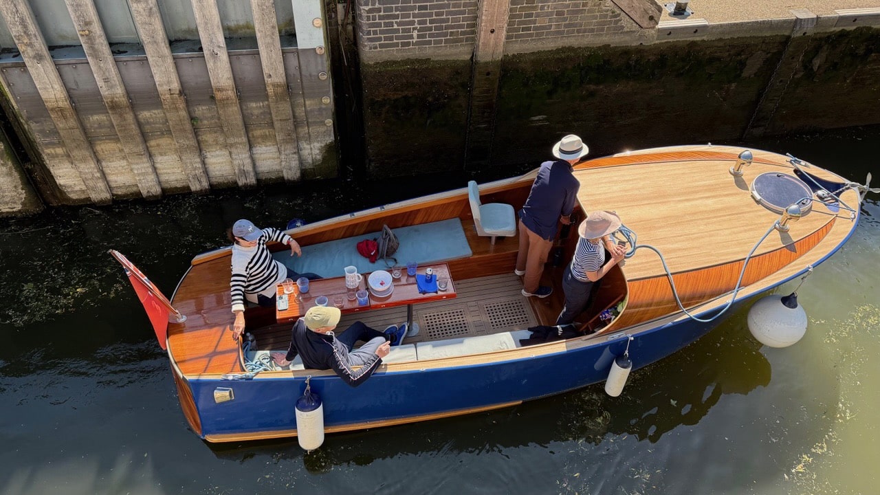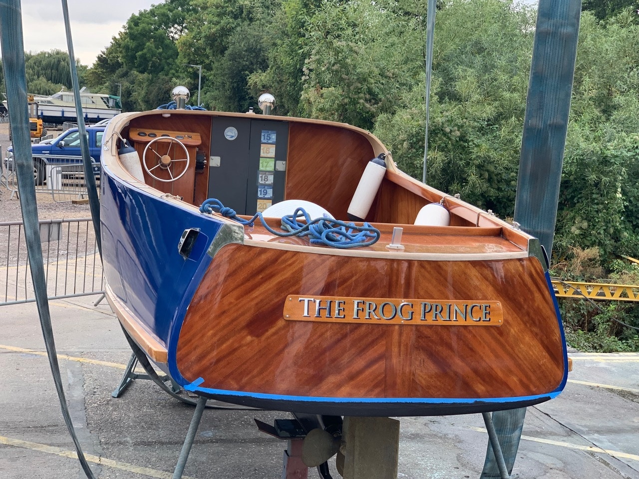The vendors are moving away from the river. Frog Prince has benefitted from a cosy boathouse but a full length cover would also do the trick should a new owner wish to keep the boat on an exposed mooring.
