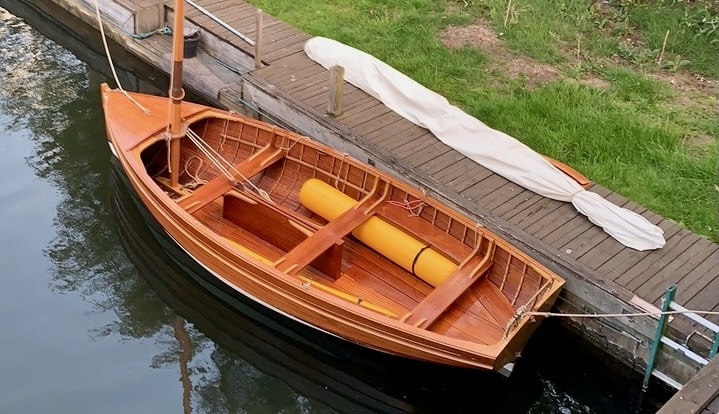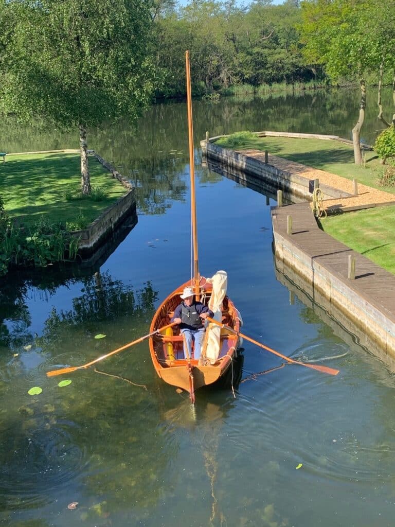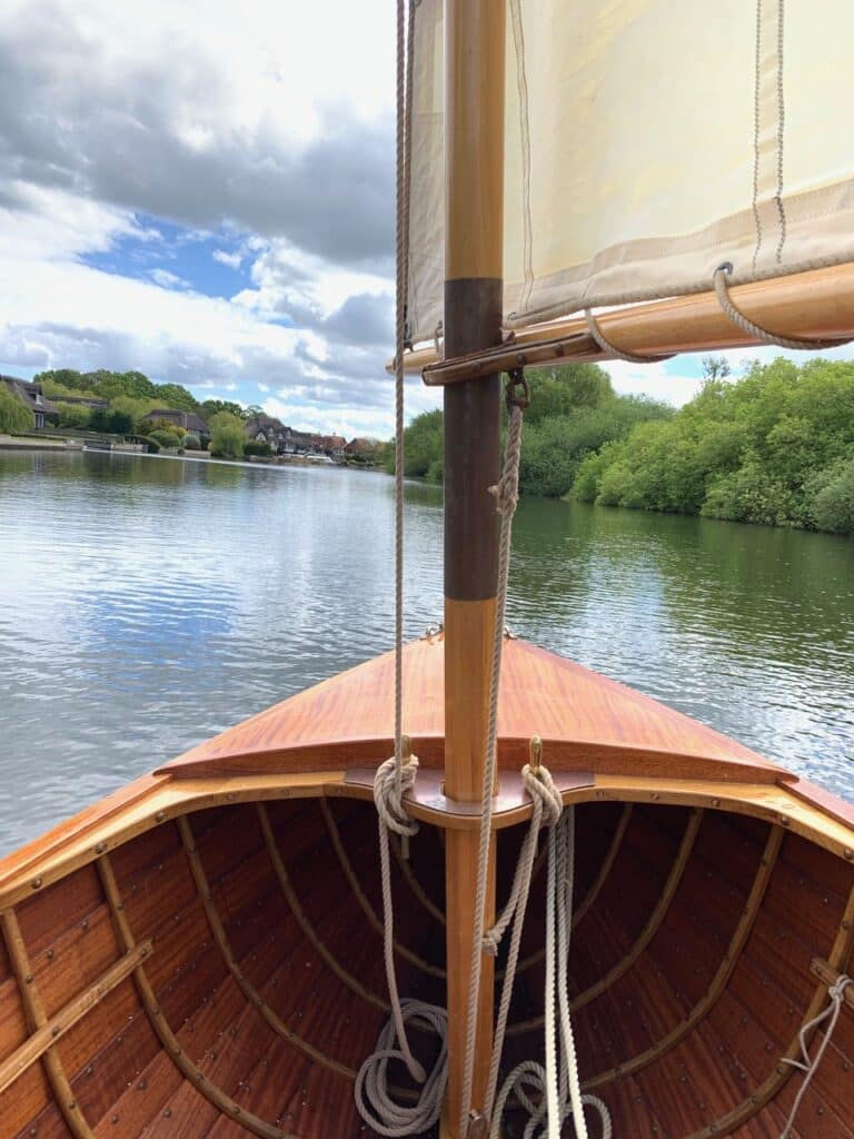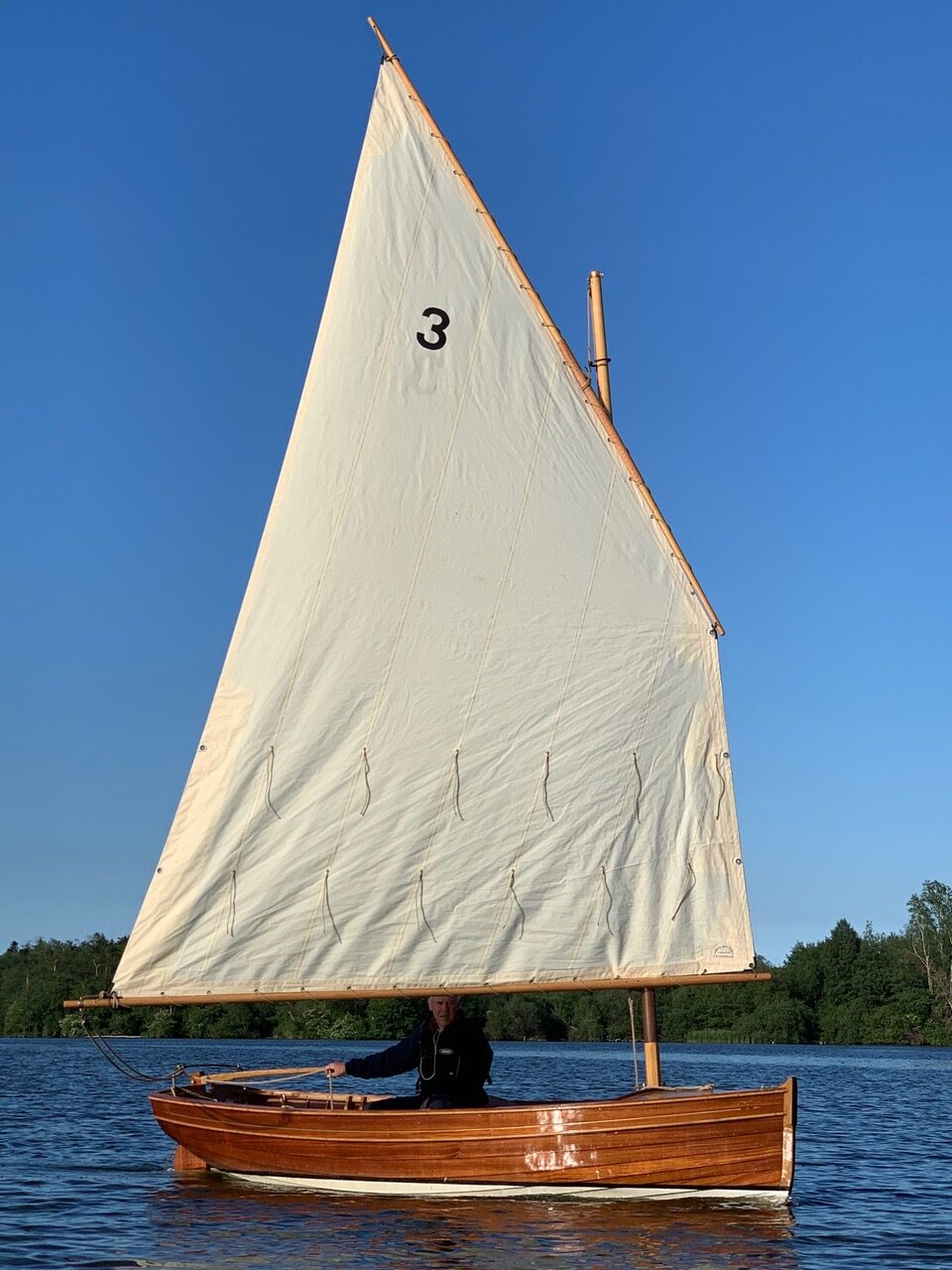 In her current ownership, Grebe has been a joy. Kept in their boathouse on the Norfolk Broads, always well cared for and lightly used. She is very comfortable for two, extremely stable, and inspires confidence whether sailing or rowing. The balanced lug rig is simple, forgiving, and immensely satisfying to use, offering exactly the sort of sailing experience these boats were designed for.