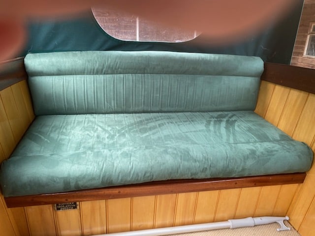 Hence you could save yourself weeks, nay years, by acquiring this lovely beamy slipper which comes complete with 2 chairs, an upholstered aft bench, 4 cushions, a set of fenders and mooring ropes and a silent electric propulsion package. There is also a smart green hood for sun and rain protection which folds over the aft coaming when not in use.